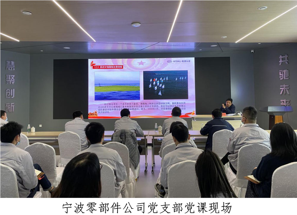 2021年3月1日-2日,中汽中心檢測(cè)認(rèn)證事業(yè)部黨委委員、紀(jì)委書(shū)記史永萬(wàn)到寧波檢驗(yàn)中心開(kāi)展調(diào)研工作,并就學(xué)習(xí)宣傳貫徹黨的十九屆五中全會(huì)精神及習(xí)近平總書(shū)記在黨史學(xué)習(xí)教育動(dòng)員大會(huì)上發(fā)表的重要講話(huà)精神講授《以縱覽歷次規(guī)劃為切入學(xué)黨史 為落實(shí)“十四五”規(guī)劃開(kāi)好局》專(zhuān)題黨課,寧波檢驗(yàn)中心黨總支書(shū)記、總經(jīng)理李海斌等陪同調(diào)研。