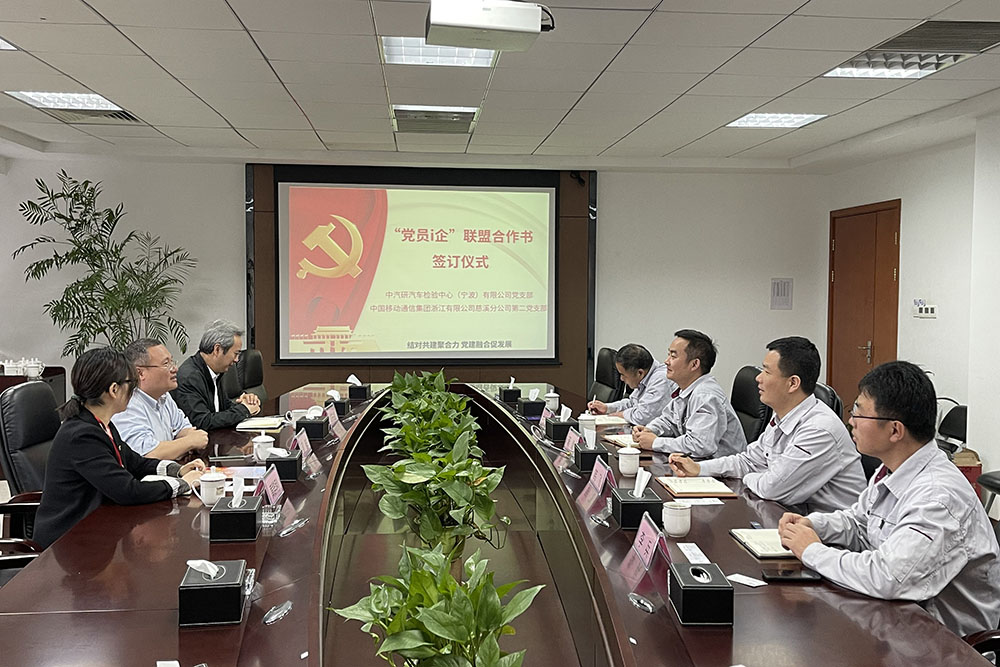 為充分發揮黨建引領作用,構建黨建經營雙向促進長效機制,2021年4月1日,中汽中心檢測認證事業部寧波檢驗中心黨總支寧波檢驗公司黨支部與中國移動通信集團浙江有限公司慈溪分公司第二黨支部舉行黨建共建簽約儀式。