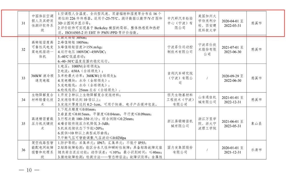 7月21日,浙江省經濟和信息化廳公布了《關于印發2021年浙江省重點技術創新項目和重點高新技術產品開發項目計劃的通知》(浙經信技術[2021]111號),寧波檢驗中心的“中國體征空調假人及其舒適性測評軟件系統”項目列入浙江省重點技術創新項目計劃。