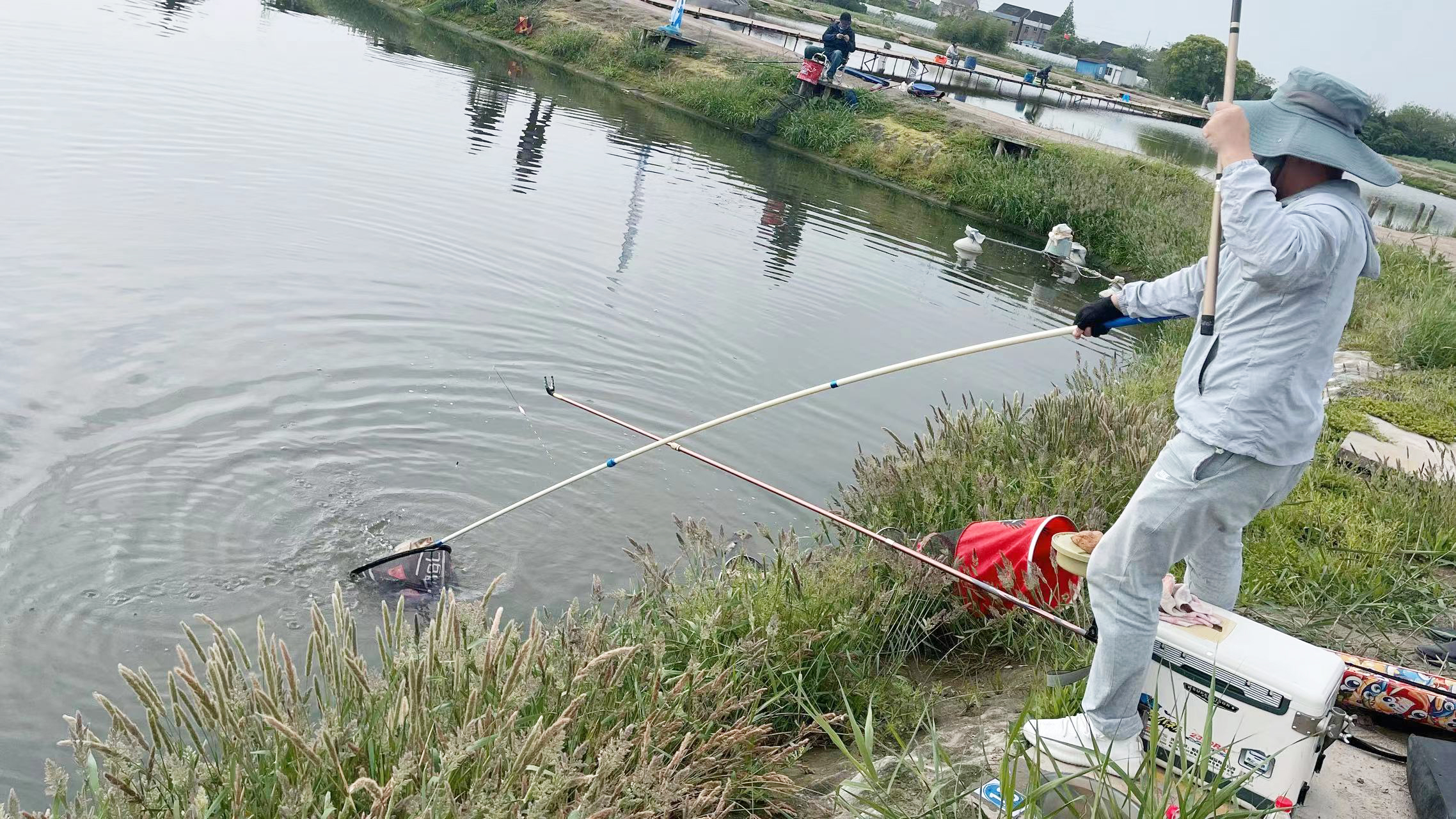 本次比賽項目為手竿釣混養(yǎng)魚,在限定時間內(nèi)根據(jù)參賽選手的魚獲總重量核算排名。為確保公平公正原則,參賽人員按抽簽順序進(jìn)入釣位,進(jìn)行開餌、整理釣具等準(zhǔn)備工作。