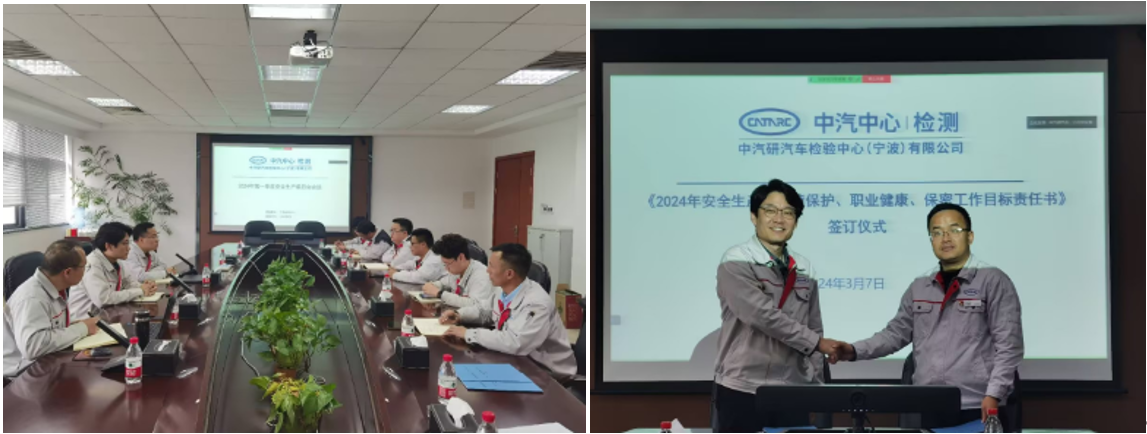 會上聽取了安全管理人員關于復工復產階段安全生產注意事項及寧波檢驗中心2024年安全生產工作計劃的匯報。隨后安委會機構成員簽訂了《2024年安全生產、環境保護、職業健康、保密工作目標責任書》。