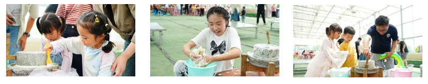 接下來,大家分別體驗了敲拓然、石磨豆?jié){、繪制風(fēng)箏等活動。